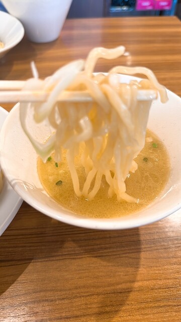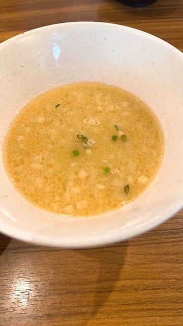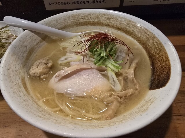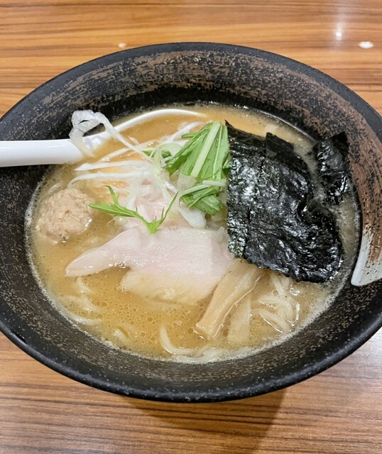 平日12時45分。 店外に待ち客4~5人。5分程度で入店できました。 濃厚鳥白湯そば味玉入り(1,130円)を券売機で購入。 券を買ったら店員さんに促された席に着席して待... 詳細を見る