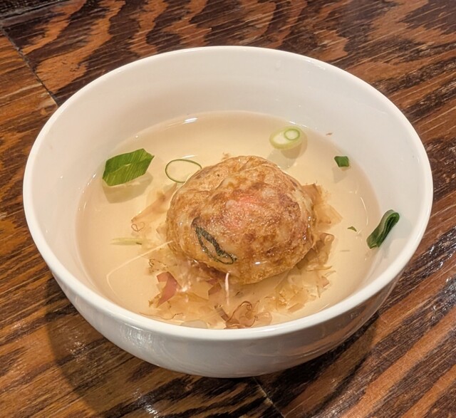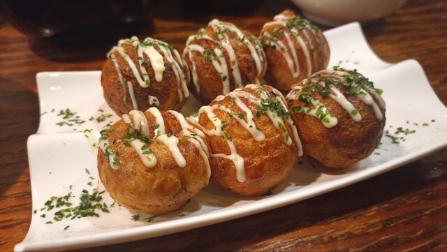 新橋駅、烏森口から徒歩6分。たこ焼きがメインの居酒屋。繁華街から少し離れたところにある。 内装はシックな雰囲気にステンドグラスの照明がオシャレなお店。 たこ焼きは焼き上がりに25分かかるが、その分じっくり焼かれたたこ焼きはふわとろで美味しい。 驚くべきふわとろで粉感がない。お箸で持った時に... 詳細を見る
