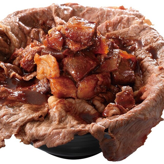 「どこにもない牛肉の丼物をつくりたい」その思いから試行錯誤を重ねて明治時代の牛鍋をヒントに今の「肉めし」が完成しました。 2013年3月に新橋で開業した「岡むら屋」の看板商品「肉めし」(税込490円)は大鍋で角切りにカットした牛バラ肉やその他の具材を合わせ味噌ベースの独自の味付けでじっくり5時間以上かけて煮込みます。 大鍋で煮込まれた牛肉はとろとろになり、それをたまねぎ、豆腐等の具材と共にご飯に盛...り提供します。どこか懐かしく、また食べたくなる肉めしをごゆっくりお召し上がりください。