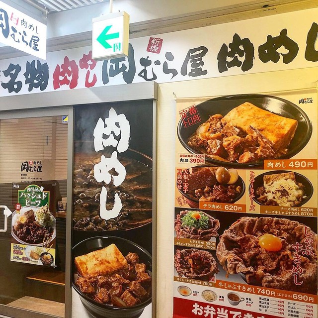 「どこにもない牛肉の丼物をつくりたい」その思いから試行錯誤を重ねて明治時代の牛鍋をヒントに今の「肉めし」が完成しました。 2013年3月に新橋で開業した「岡むら屋」の看板商品「肉めし」(税込490円)は大鍋で角切りにカットした牛バラ肉やその他の具材を合わせ味噌ベースの独自の味付けでじっくり5時間以上かけて煮込みます。 大鍋で煮込まれた牛肉はとろとろになり、それをたまねぎ、豆腐等の具材と共にご飯に盛...り提供します。どこか懐かしく、また食べたくなる肉めしをごゆっくりお召し上がりください。