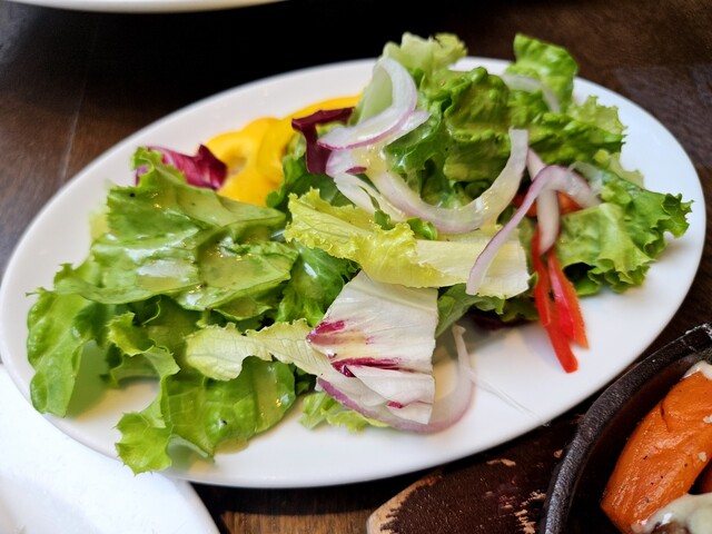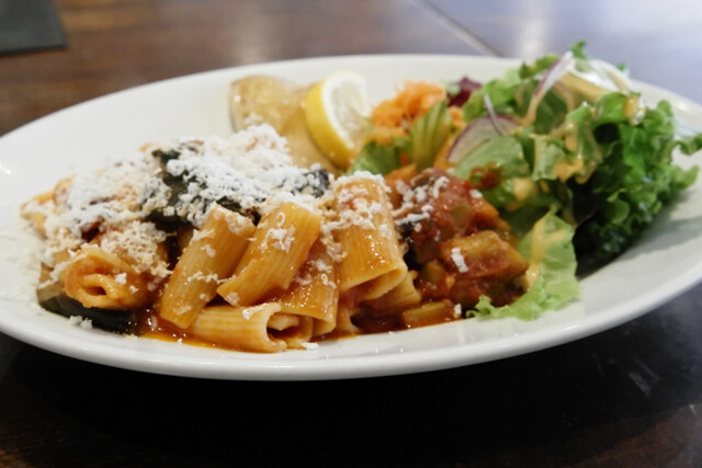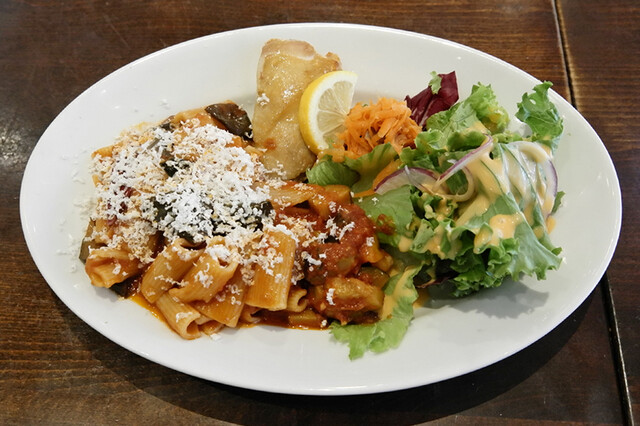 比較的オオバコのカジュアルイタリアン。ランチはパスタやハンバーグから料理を選びます。サラダやドリンクはオプションです。