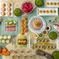 「シェフズ・トリート・ランチビュッフェ~Tokyo’s Kitchen~」では、築地という土地の、日本各地から良質な食材が集まる市場としての側面と、文明開化により外国人居住地として整備されたことのある歴史に着想を得て、全国の新鮮な食材を洋食仕立てでご提供いたします。江戸前穴子や東京産黒毛和牛を始めとする東京の味覚を主役に、バラエティ豊かなラインアップがビュッフェ台を鮮やかに彩ります。