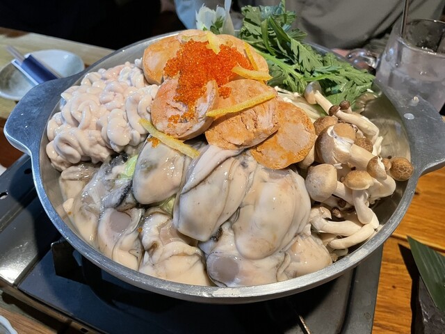 【痛風鍋とタラバカニ蒸籠蒸しのコース】☆8品:10,000円(税込)☆ 牡蠣・あん肝・白子の旨味が凝縮された痛風鍋の背徳コース!8品