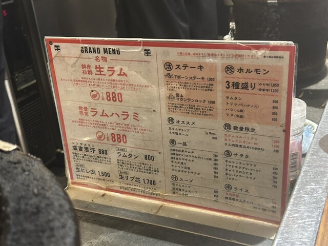 ラムやジンギスカンなど、さまざまな羊肉料理が楽しめるお店です。