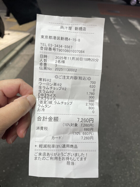 新橋にある羊肉炭火焼「肉汁屋」へ。