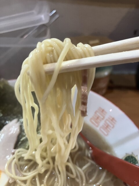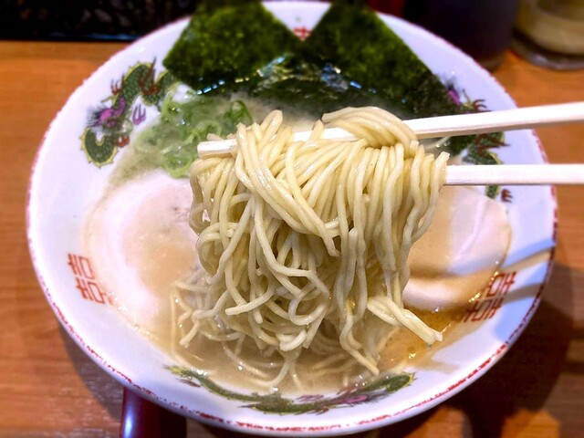 木曜の昼、同僚を連れ1年ちょいぶりの訪問。 12時35分の到着で外待ち5人。 12時47分、入店し並んで着席。 ・豚骨らーめん(並) 780円 をバリカタでオーダー。 ... 詳細を見る