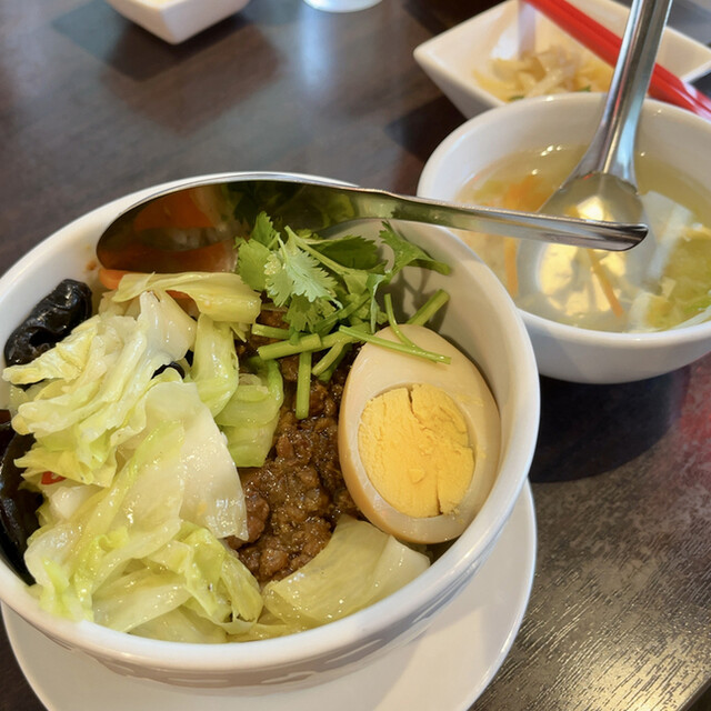 《新台北》で台湾辛そば900円と魯肉飯(小)160円です。