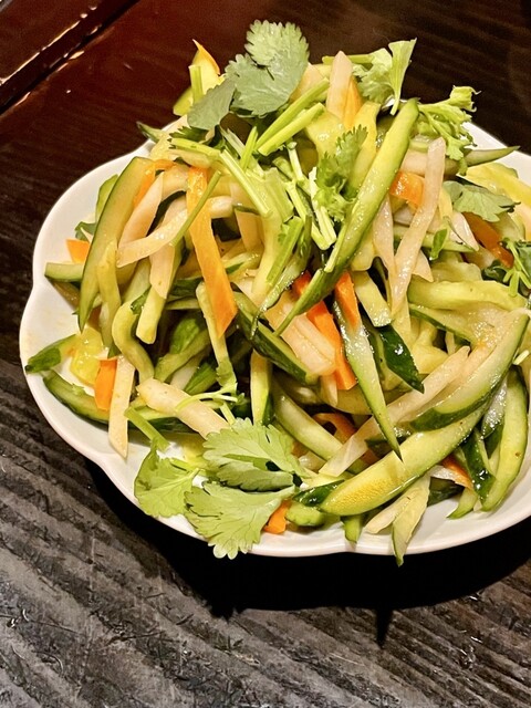 ・パクチーを乗せた辛いサラダ