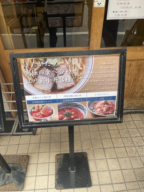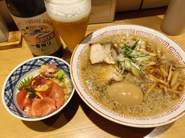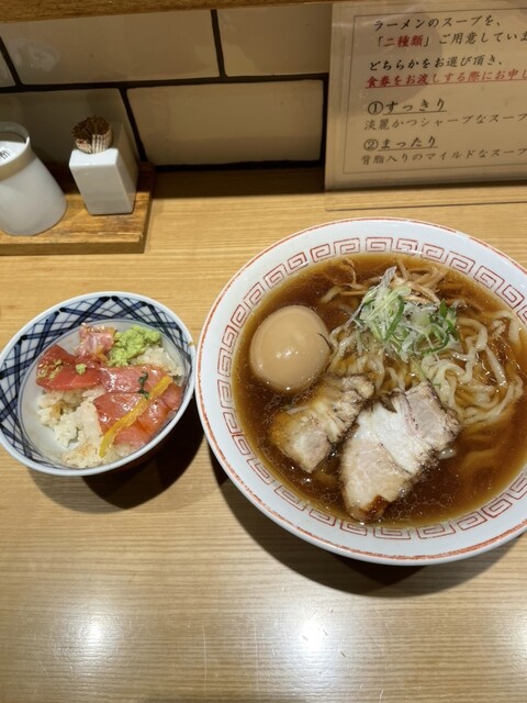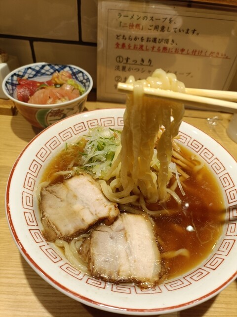 休日の早朝に利用。新橋の休日の朝なんて人がいるのか疑問だったが、ここはとても賑わいを見せていた。頼んだのは醤油ラーメンとネギトロ丼。食べてみたら口に広がる美味しさと共にわざわざ来る理由に合点がいった。