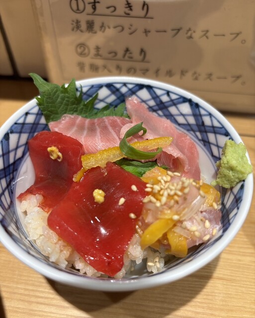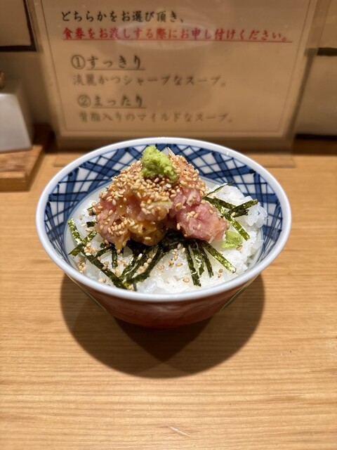 日本で最も相性のいい食べ方と言われる「醤油ラーメン」と「鮪」との至福のマリアージュをお楽しみください。 |