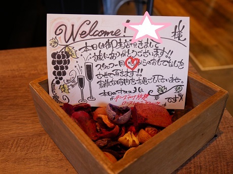 予約しておいたら、こんなに可愛らしいウェルカムボードがテーブルに置いてあり感激でした!