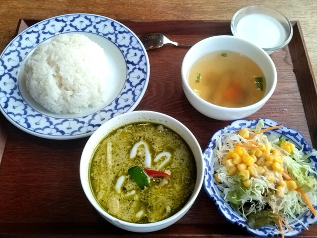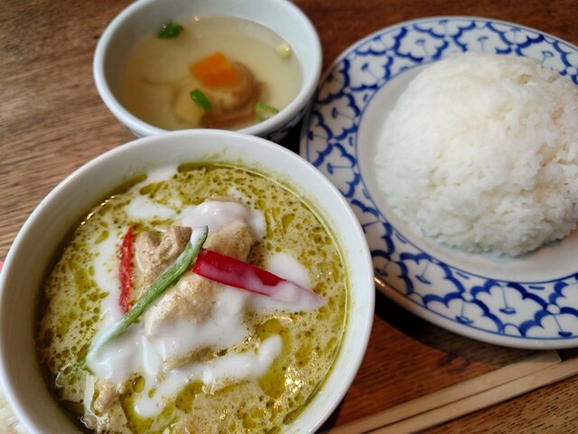 タイ料理屋 グリーンカレーランチセット 1200円 暑い時は暑い国の料理を食べてみよう。新橋駅烏森口すぐのタイ料理屋。 4名掛けテーブル4卓、同丸テーブル2卓、2名掛... 詳細を見る