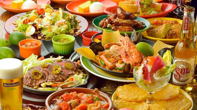 女子会から会社の飲み会まで幅広くご利用いただける陽気なメキシカン♪定番は目の前でファイヤー‼皆さん携帯片手に撮影会♪盛り上がる事間違いなし、人気の「ファヒータ」や、スパイス香る本格タコスやナチョスなど、お酒に合うお料理が満載です。テキーラをはじめ、ビールやカクテルなど国際色豊かなお酒とともにぜひ‼ご宴会に最適なコースは飲み放題付4,000円~、◎素敵な時間をお過ごしください♪