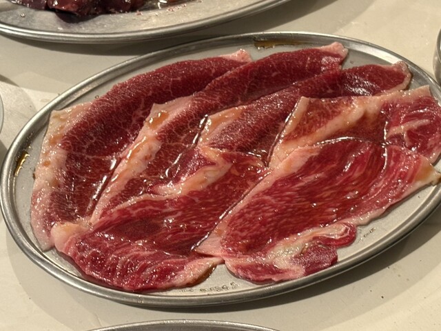 まずは、ビールを頼みその間にお肉を選んでいると、1...