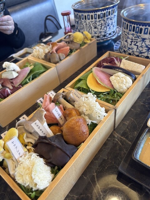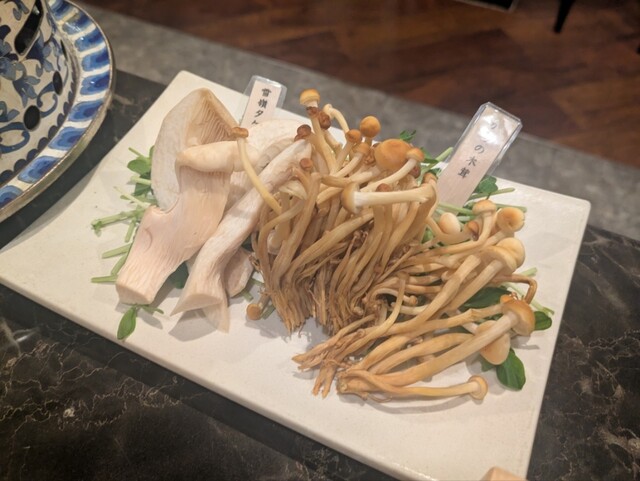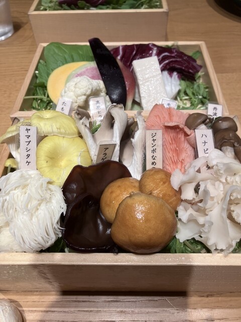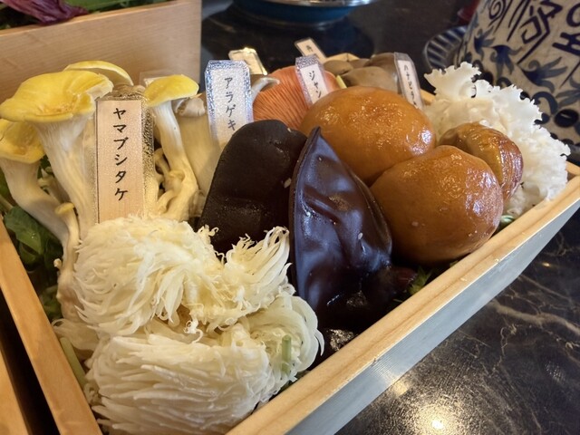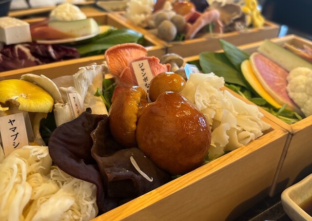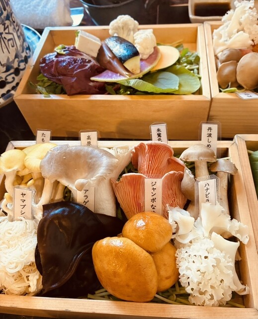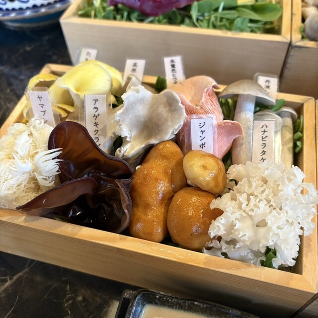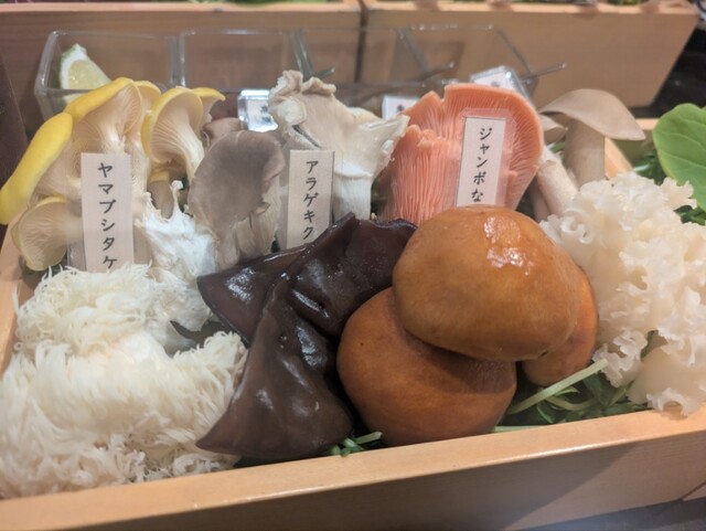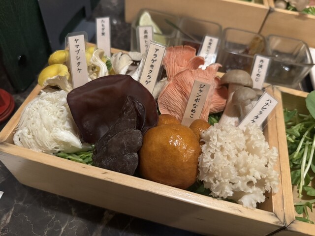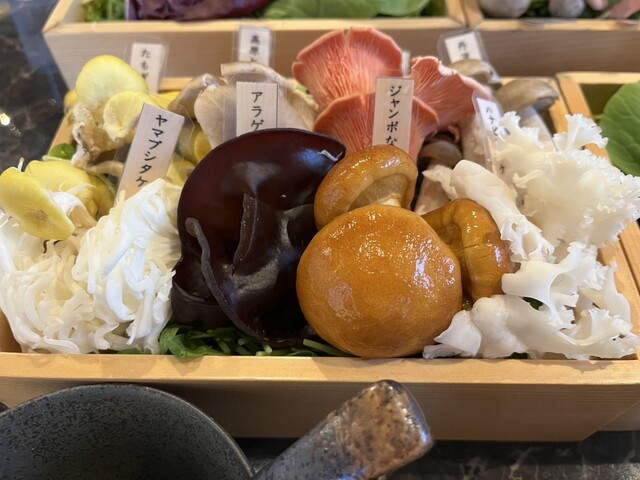 たくさんのキノコの種類が食べられて美味しかったです。お鍋のスープは何回も追加して下さるのでたくさん飲むことができ満足です。締めのキノコの麺も量がかなり少なくてお腹いっぱいになりすぎず良かったです。冬に...