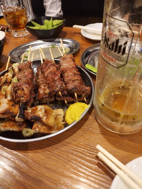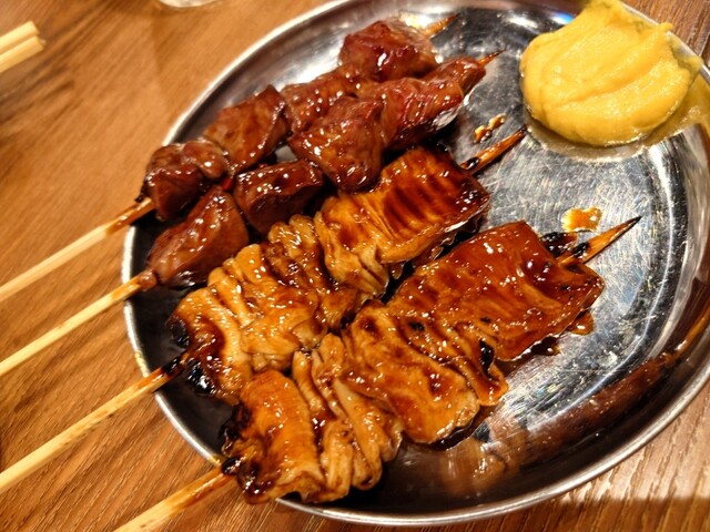 カシラ、ハラミ、タン、トロシロ、ねぎま、ハツ、うずら、オール198円。身が大きくて食べこたえがあります。真面目に炭火で焼いてます。安いけどとても美味しい。 #一品料理も豊富で安い... 詳細を見る