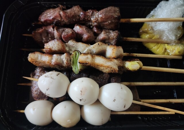 カシラ、ハラミ、タン、トロシロ、ねぎま、ハツ、うずら、オール198円。身が大きくて食べこたえがあります。真面目に炭火で焼いてます。安いけどとても美味しい。