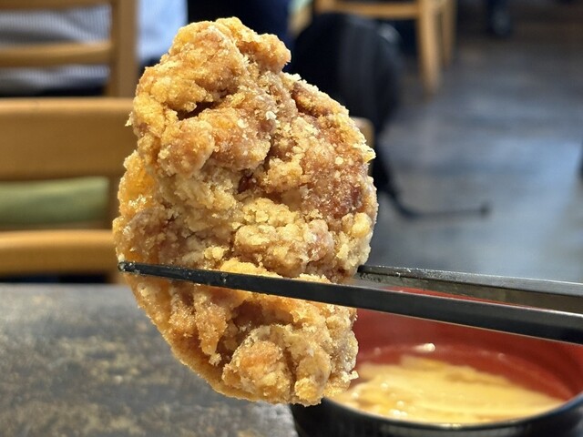 JR新橋駅烏森口から烏森通り、赤レンガ通りを経由して徒歩8分のところにあります。 ビル1Fの角地にお洒落なBARのような見た目です。 店内もBARを思わせる照明や内装で、客席の殆どがテーブル席です。 から揚げ専門店で、昼は定食、夜はいろいろなおつまみのある居酒屋になります。 定食はレギュラー... 詳細を見る
