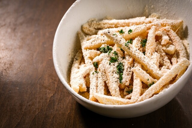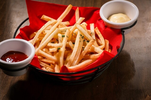 まずいただいたのは枝豆。シンプルですが塩加減がちょうどよく、最初の一皿として安心感があります。続いてフライドポテトは細めでカリッと揚がっており、油っぽさが残らず、つい...