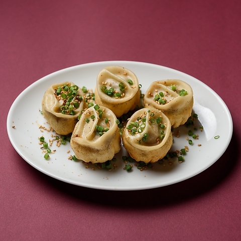 中国では生煎饅頭と呼ばれ上海発祥の人気ソウルフード。小籠包より少し厚めの小麦粉の生地で豚肉の餡を包んだ饅頭を鉄板で香ばしく焼き上げます。小籠包と同様包みの中からスープが溢れ出るのが最大の特徴です。中国の名だたる点心師に教えを乞き試行錯誤を繰り返し完成させました。本場中国の味をお楽しみ下さい。