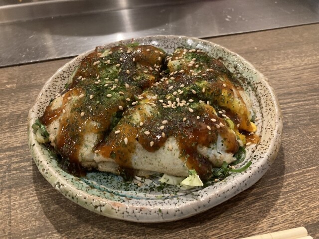 私のおすすめは、鉄板焼きは オムそば。ボリューミーでオタフクソースの塩梅が絶妙。鉄板さばきも華麗でカウンターで見ていると、作る過程も含めて楽しめる。