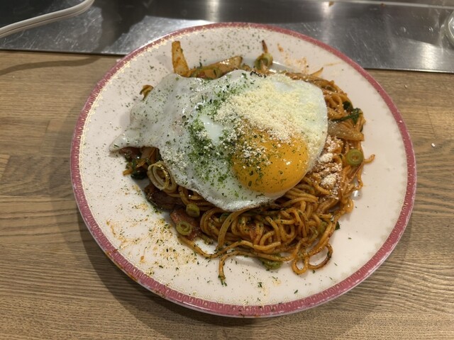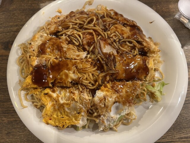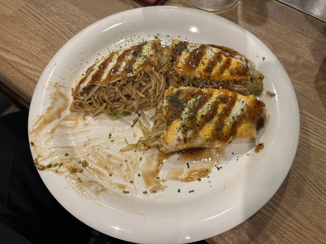 最後に、オムそば。830円とは思えない、1.5人前はあるボリューム。鉄板で焼きたてをオタフクソースで食べて最高!