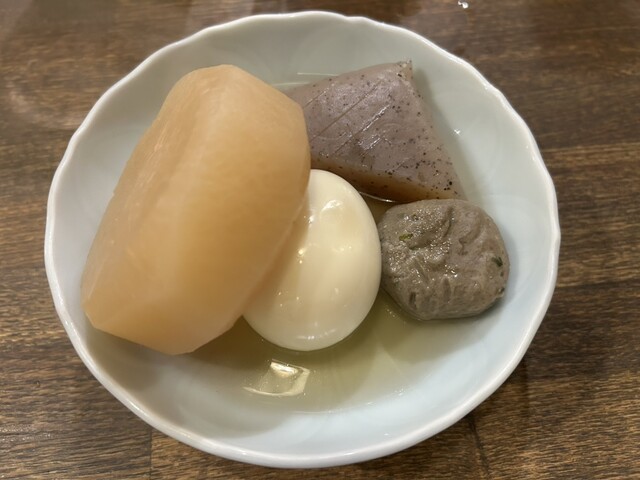 おでんの大根は、丁度いいしみ具合で歯応えもありバッチリ!たまごもいい硬さでお得感あり、