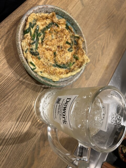 一旦、11/末で打ち切りになる、ハッピーアワー1000円を注文。飲み物二杯にお任せ料理がついてくる。めちゃくちゃお得。ハイボール二杯にニラ玉を頂いた。ニラ玉は出汁が染み込んでめちゃ美味い!お得感がすごい。