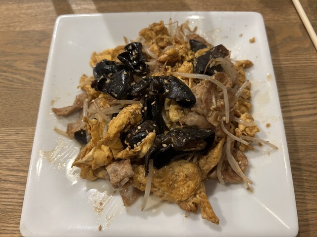 キクラゲ・もやし・卵・豚肉炒め、