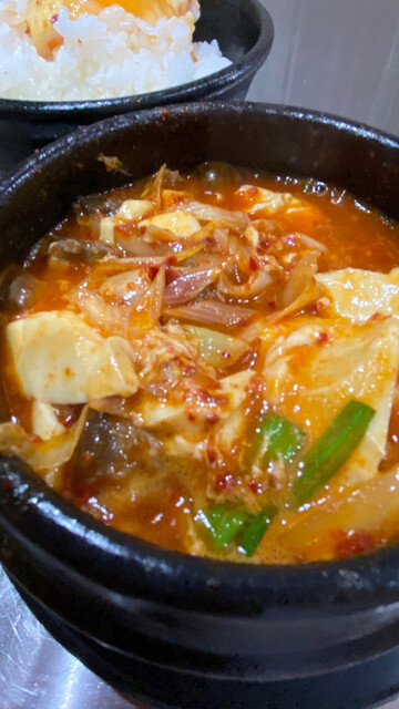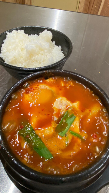 昨日垢すりした後からなんとなく韓国料理が食べたくて……お店の看板につられてふらっと純豆腐ランチ、牛すじ純豆腐。
