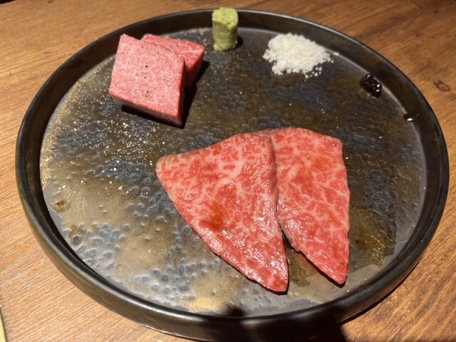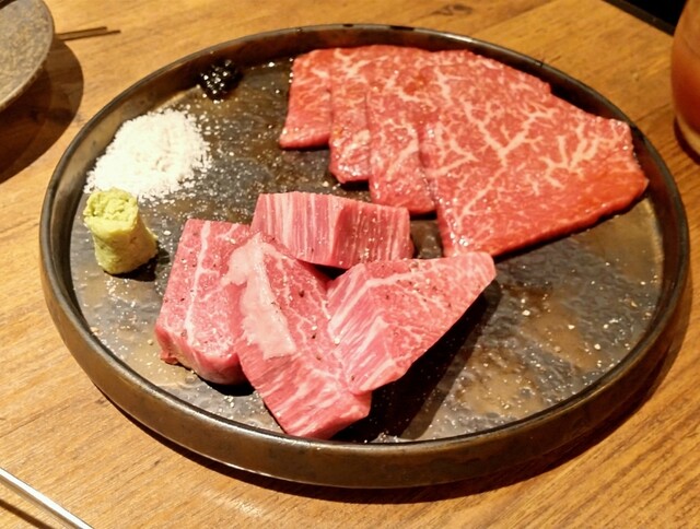 新橋駅から徒歩5分ほど、地下にある落ち着いた空間で、こだわりの和牛とタンを堪能できるお店です。