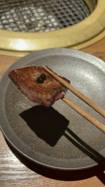 簾で隣のテーブルと分けた掘りごたつ式の個室は照明が焼き網にあたるようになっており、お肉は...