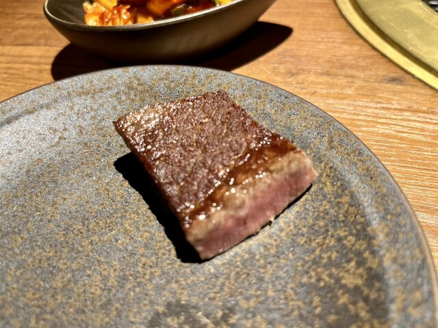 店内は黒を基調としたシックな空間で、個室・半個室中心。周囲を気にせず食事に集中できる落ち着いた雰囲気です。何より印象的だったのは、このコースがすべてスタッフによるフルアテンドであること。和牛オリンピック二連覇を誇る鹿児島県産黒牛を、ベストな焼き加減で味わえる贅沢な内容です。