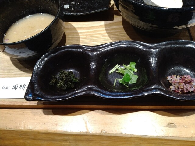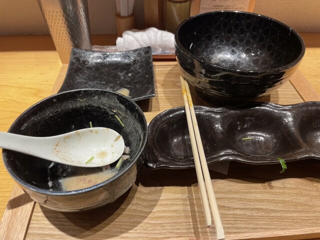 平日の昼11:20に店前に到着も店前には案の定並びあり。初めての来店ながら、少しひいた。。店は5席しかないから5人ずつの案内となるが、食べる方も忙しなく食べないといけず、あまり落ち着けない感じ。12:...