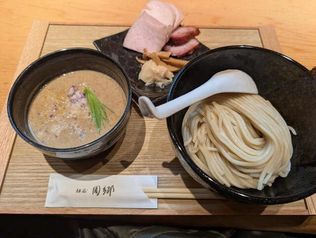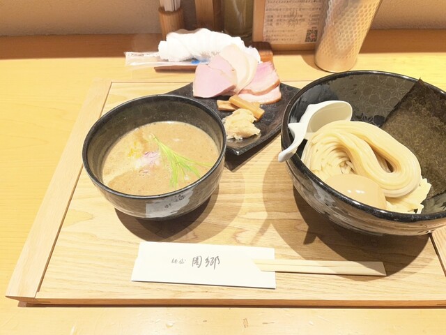 10数名並んでいるが、折角なので平日12:50に並ぶ!外の券売機で特製つけ麺¥1700を購入。並んでいる時にチケット渡します。50分で入店出来ましたが、店内に入ると割とすぐ提供されます。