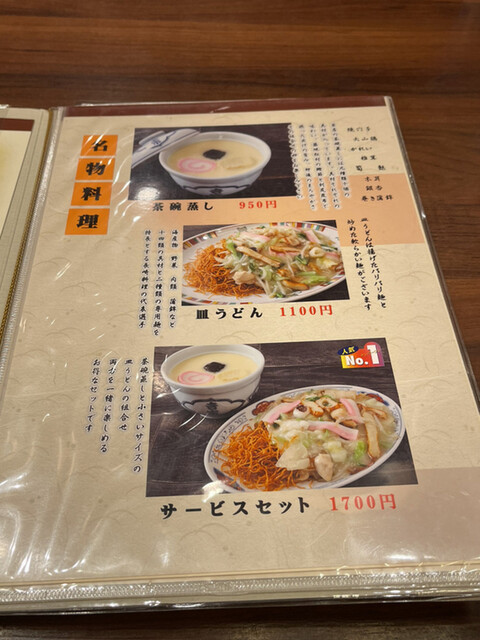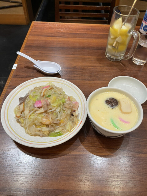 茶碗蒸しと皿うどん小サイズの「サービスセット」1700円(ランチ時1600円)