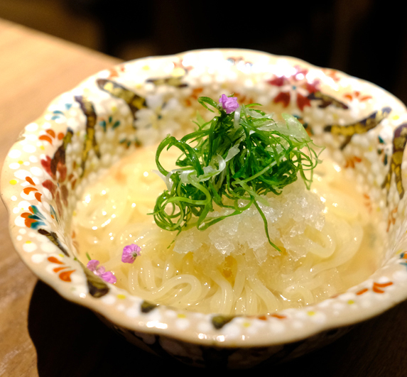 優しい和風出汁に細麺が絡む「”名物”出汁冷麺」も絶品
