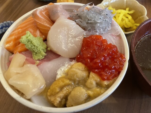 祝日の開店ジャストに訪問、先客ナシで一階のテーブルに。その後退店までに3名だったので、休日待ち気にする必要なさそう。 みこ丼(並)1900円をQRコード注文。 イカが苦手だった... 詳細を見る