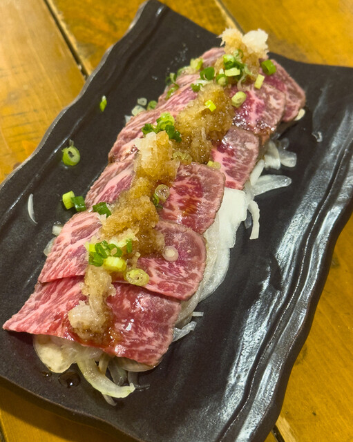 思ったより駅近で 居酒屋が多い通りなので 見逃し注意なお店でした。 今回注文したメニューはこちら! ーーー ・国産ホルモン鉄板炒め 990円 ・和牛のたたきおろ... 詳細を見る