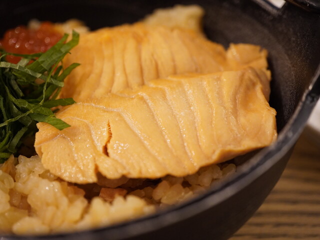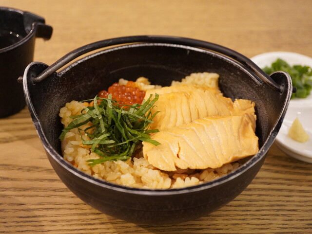 初来店です。 予約して日曜日の11:30に来店、コンパクトな店内ですが新しくて綺麗でした。 すぐに満席になっていたので予約した方が良いかもしれません。ただ、周りに他にも魅力的なお店が多く見られ、並んでいる人はいない様子でした。 はらこ飯と北国の豪華2種サーモン丼(季節限定メニュー)を注文、注文後5分もせずサラダ等が配膳されスタート。 サラダにもサーモンが少し入っておりチーズの香りも高く... 詳細を見る