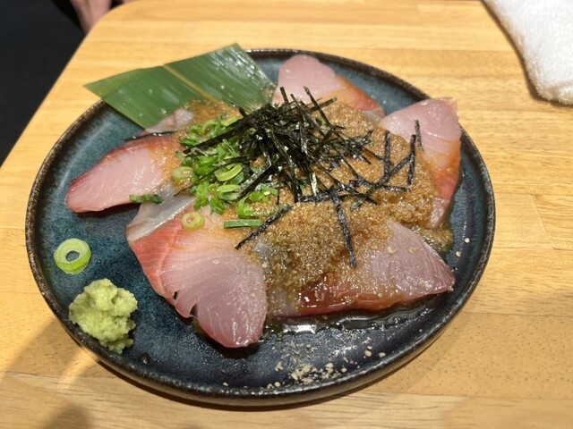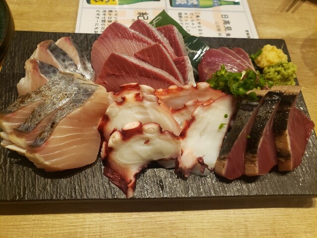 今宵はヤキオグル―プ探索と言うことで、節分の火曜日 18:15〜2名で、飲み放題予約をしてお邪魔してきました。到着した時の店内は7割位の着席率、どんどん予約のお客さんが入店。やっぱりの大人気店の予感。丁寧な店員さんから簡単にお店のシステムを説明して頂き、「お刺身と天ぷらは現在、ご注文が重なっておりお時間がかかりますので、先にご注文があればお受け致します」と心地良い接客を頂きました。刺身の盛り合わせ...
