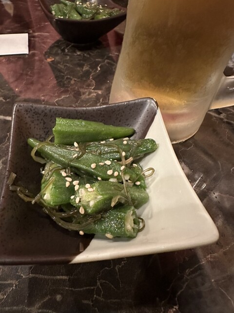 お通しのオクラの胡麻和えが衝撃的な美味しさ。