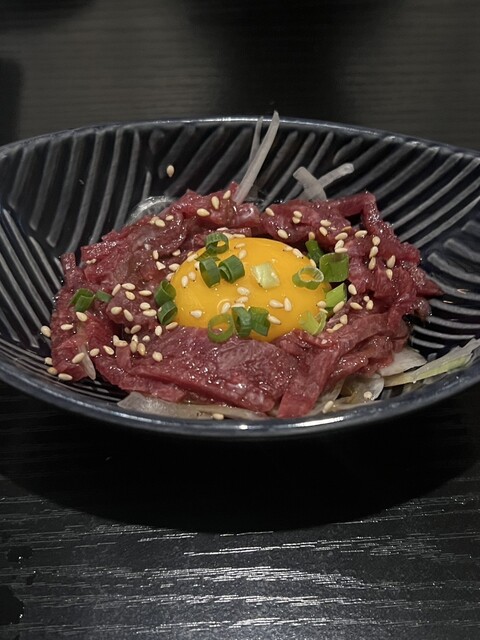 馬刺しの三点盛りを注文しました。新鮮な肉質で、脂がほどよく乗っており、とても柔らかい口当たりが魅力的でした。部位ごとに違った味わいが楽しめ、しっかりと濃い味の醤油が肉の旨味を引き立てていました。馬刺しの風味を引き出す薬味も充実しており、一口ごとに九州の味を感じることができました。価格もリーズナブルで、コスパが非常に高かったです。