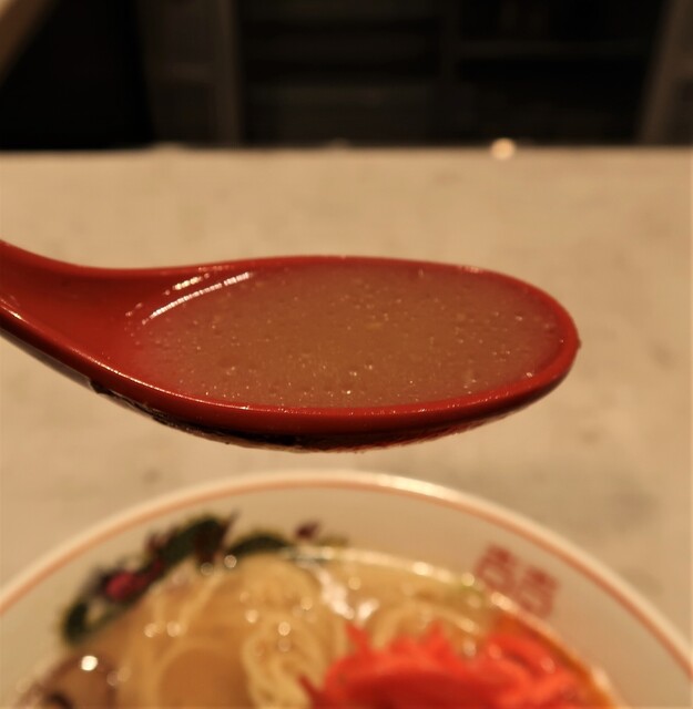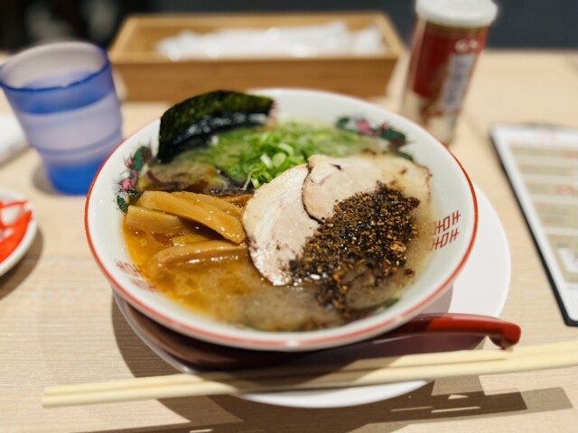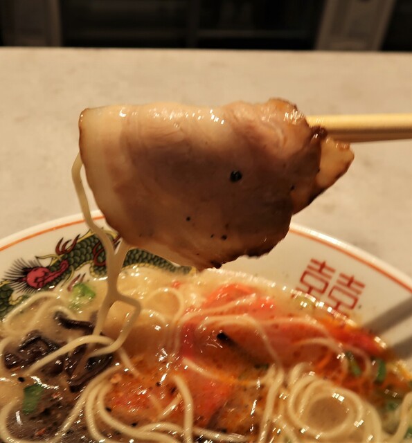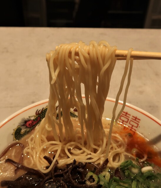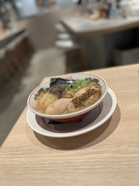濃厚豚骨には 遠い感じがするスープは 癖のない、やや甘味がある味。 中細のストレート麺は 普通でもパッツリと 豚骨スープとの組み合わせがいい。 小さめで薄めに切... 詳細を見る
