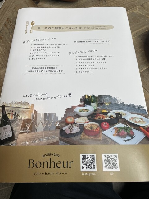 この度は「BISTRO&CAFE Bonheur」にご来店いただき、誠にありがとうございます。