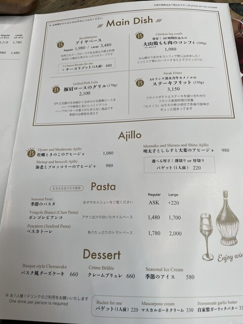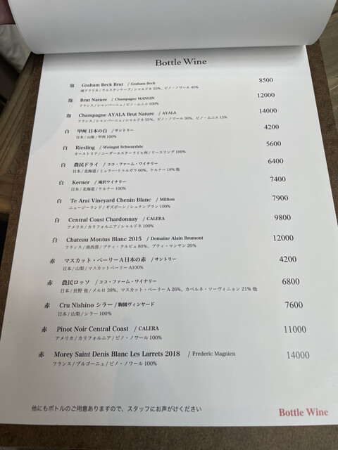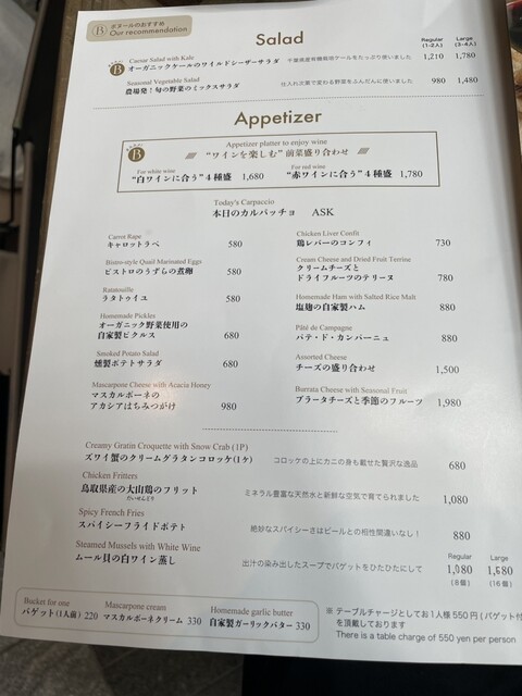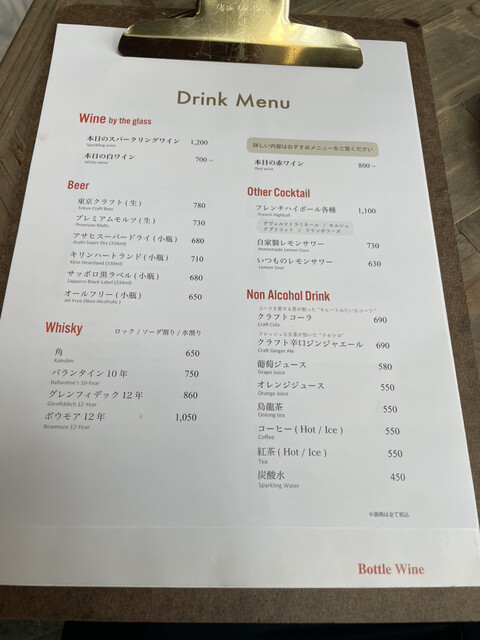 | サービス | 2時間半以上の宴会可、お祝い・サプライズ可(バースデープレート)、ドリンク持込可、ソムリエがいる、複数言語メニューあり(英語)、デジタルメニューあり |