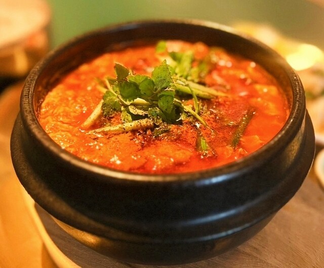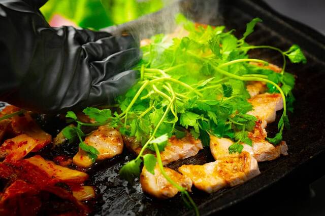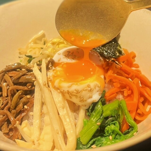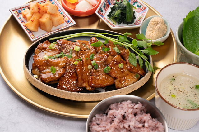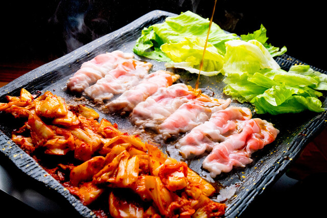 サムギョプサル好きにはぜひ訪れてほしい専門店。名物の「カンナサムギョプサル」は、カンナで削ったように薄切りにした豚バラ肉を特製醤油ダレに漬け込み、スタッフが傾斜のある鉄板で丁寧に焼き上げてくれます。余分な脂が落ちるためヘルシーで旨味は濃厚。サニーレタスやエゴマ、自家製マスタードなど好みのスタイルでいただけますが、特におすすめは行者ニンニクと自家製ネギの辛味和えを合わせる食べ方。お肉と絶妙に絡み合い...