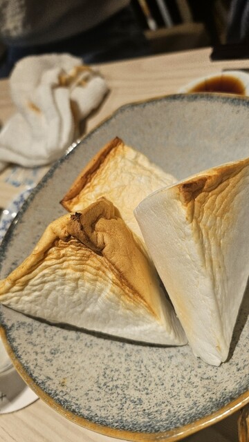 ふわふわで分厚いのですが、一部分の表面が薄く炙られているのが