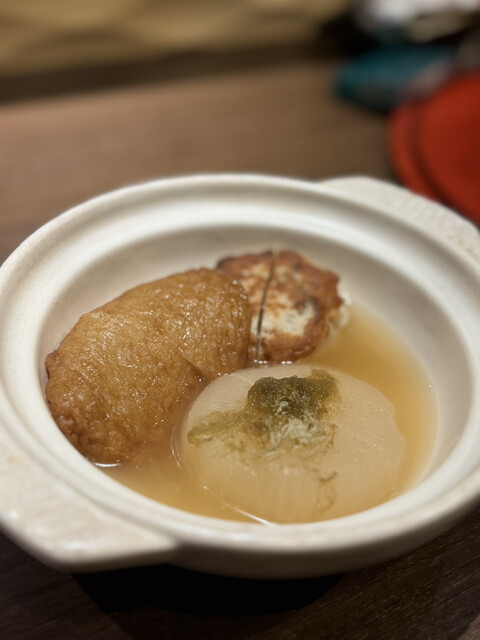 おばんざいの合間に注文したおでんもしっとりと仕上がっていてレベルの高さを実感。地酒の品揃えもよく、料理との相性を考えて提案してくださるスタッフの方の対応もとても丁寧で好印象でした。