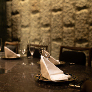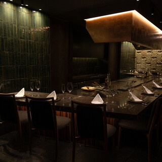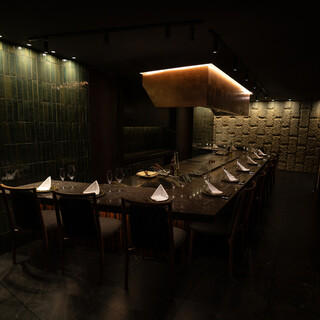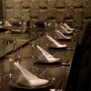 銀座のビル4階に広がる大人の空間。心地よい暗さが落ち着きます✨キッチンを舞...